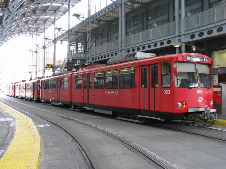 San Diego Trolley Siemens-Duwag LRV #1053 @ American Plaza. Photo taken by Brian Weinberg, 6/6/2004.