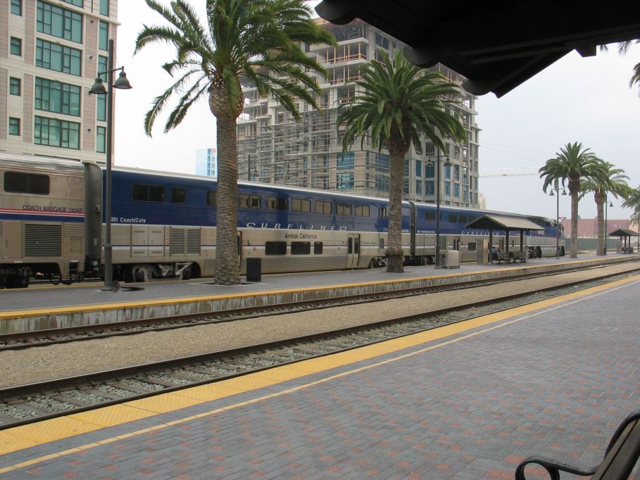 Amtrak California Surfliner set @ Santa Fe depot. Photo taken by Brian Weinberg, 6/6/2004.