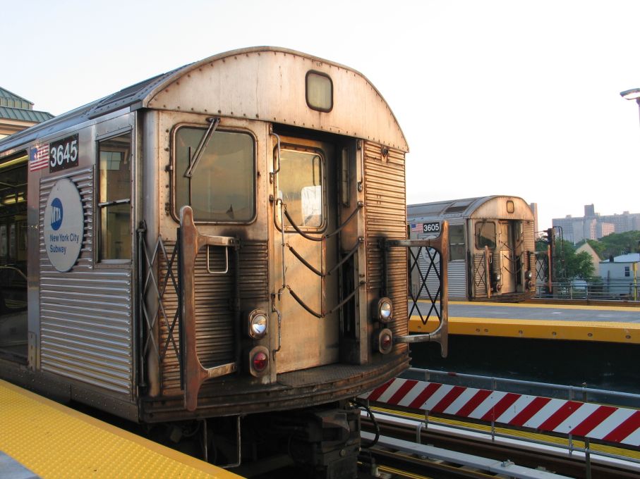 R-32 3645 (Q) and R-32 3605 (F) @ Coney Island - Stillwell Av. Photo taken by Brian Weinberg, 6/23/2004.