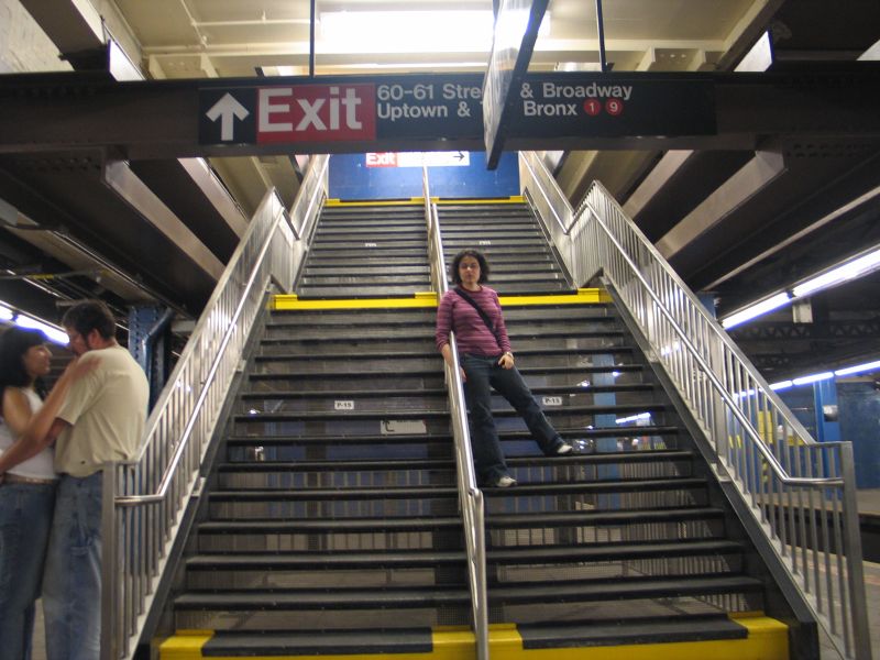 New staircase @ 59 St - Columbus Circle (NB Platform). Photo taken by Brian Weinberg, 8/22/2004.